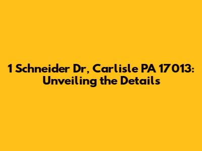 Hey there, folks! Let's dive deep into a specific address: 1 Schneider Dr, Carlisle PA 17013. Ever wonder what kind of information we can dig up about a place just by knowing its address? Well, buckle up, because we're about to find out! This isn't just about a simple street address; it's about uncovering a wealth of details that can range from property values and historical records to local amenities and neighborhood insights. This exploration will show you how to find information about 1 Schneider Dr, Carlisle PA 17013, and what kind of details you can expect.