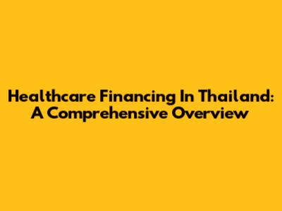 Healthcare Financing In Thailand: A Comprehensive Overview